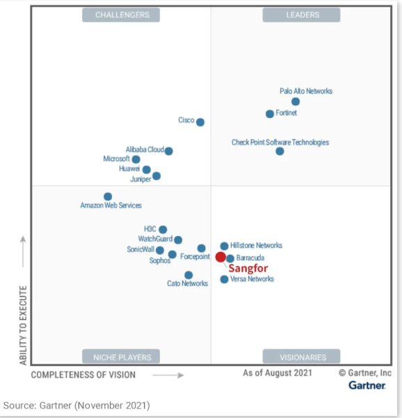 深信服入圍Gartner 2021年全球網絡防火墻魔力象限