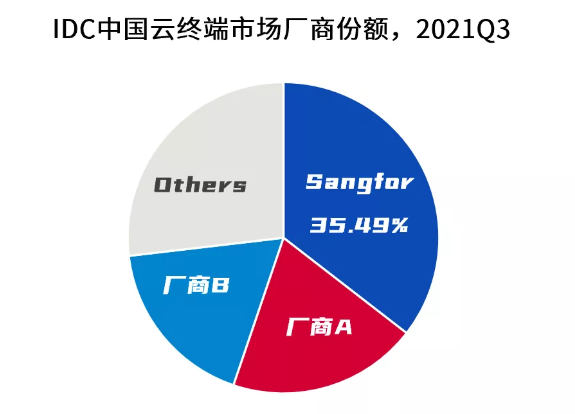 國際數據公司(IDC)發布《2021年Q3中國云終端市場追蹤報告》,深信服桌面云以35.49%的市占率,再次位列***。