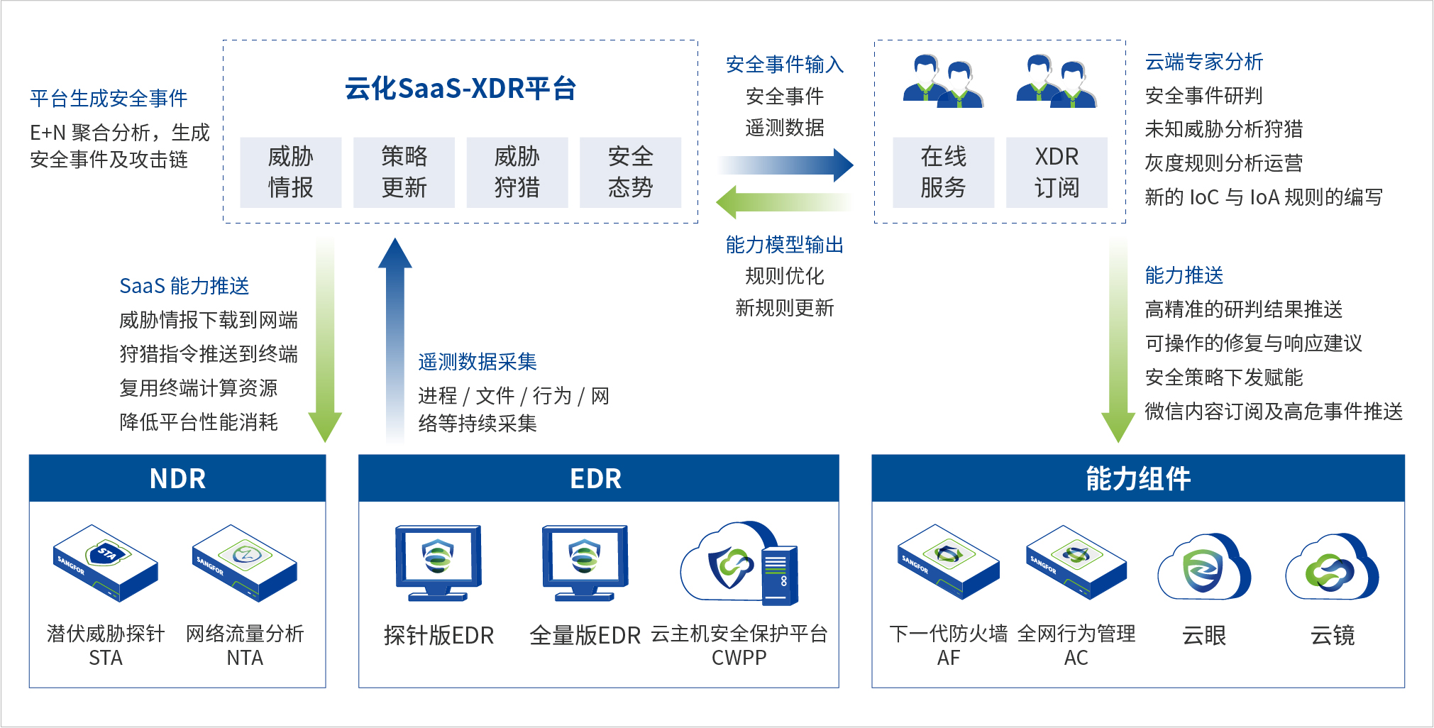 深信服 XDR 是一個基于 SaaS 化模式的安全威脅檢測和事件響應平臺,通過原生的流量采集與端點采集工具,將關鍵數據聚合分析,準確生成安全事件并自動回溯完整攻擊鏈;內置微劇本以半自動化方式高效響應事件,結合云端專家提供托管式檢測與響應服務 MDR,滿足用戶對深度檢測、精準響應、持續生長的安全需求。