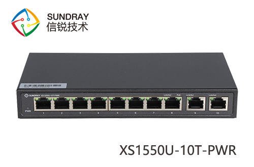 XS1550U-10T-PWR是信銳銳靈系列高性能的10口全千兆POE交換機。此款交換機是一款二層非網管型交換機產品,提供8個10/100/1000Mbps自適應電口(支持POE)、2個1000Mbps電口;支持所有端口線速轉發,可提供更大的網絡靈活性。